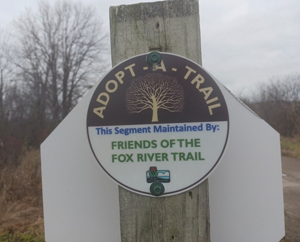 The Friends FRT have officially adopted a segment of the Fox River Trail, from Heritage Road (7.4 mile marker) to Rockland Road (8.3 mile marker).